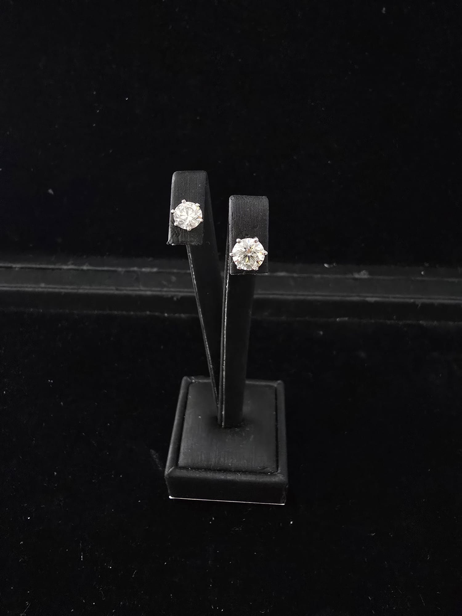 Orecchini in oro bianco 18 kt con diamanti taglio brillante certificati IGI n. 616496832 e GIA n. 616496238.
